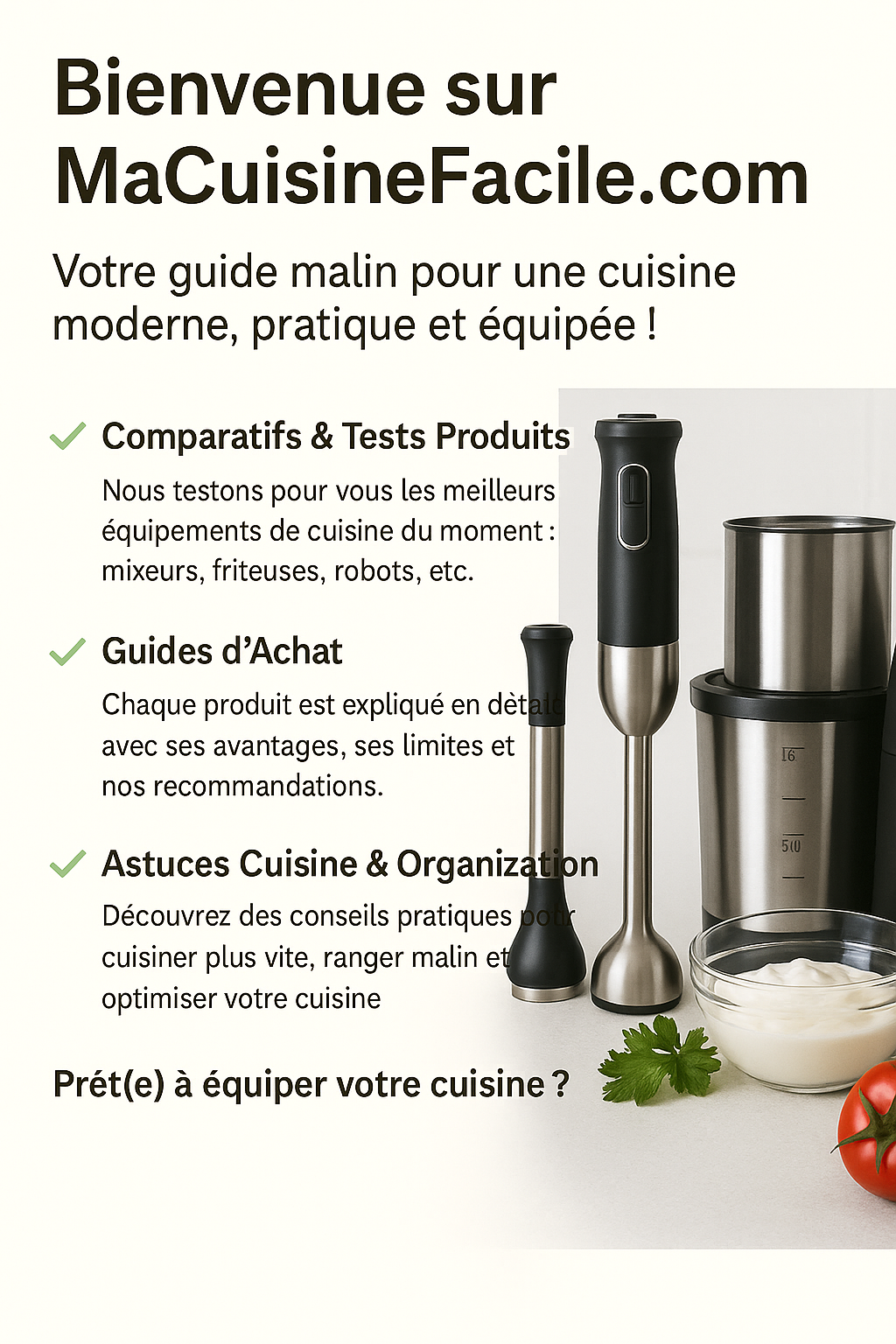 Ma cuisine facile est un site d’affiliation pratique et intelligent, dédié à ceux qui souhaitent mieux équiper leur cuisine sans se perdre dans des centaines d’offres. Grâce au programme Amazon Partenaires, nous sélectionnons pour vous les meilleurs articles essentiels, testés, utiles et accessibles.